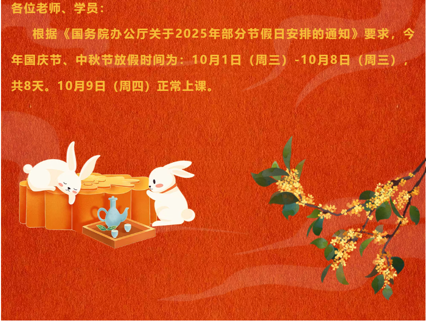 关于国庆节、中秋节放假的通知